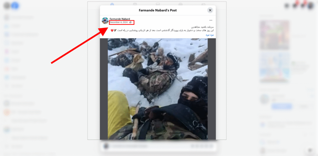 تصویر دوم: رهبر جبهه مقاومت ملی در یک پُست فیسبوک همین تصویر را در دسامبر 2024 منتشر کرده است، که میتوانید آن را به شکل زیر مشاهده کنید.