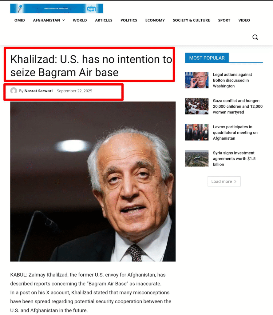 Other international actors have also weighed in. China’s foreign ministry urged all sides to avoid steps that could fuel regional instability, while emphasizing that Afghanistan’s future should remain in Afghan hands. Former U.S. envoy Zalmay Khalilzad suggested that reports of Washington seeking to forcibly retake Bagram were misleading, saying he did not believe the U.S. aimed to reclaim the base outright.