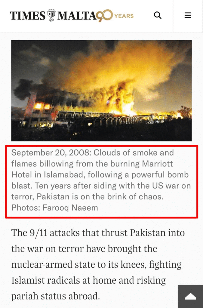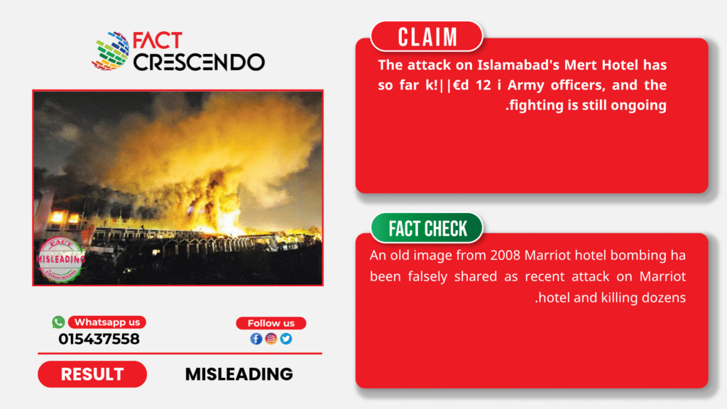 However, Fact Crescendo’s findings show that an old image from 2008 Marriot hotel bombing ha been falsely shared as recent attack on Marriot hotel and killing dozens.
