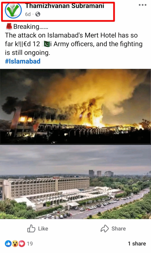 Also there are no media reports supporting the social media claims of 12 Pakistani Army soldiers being killed in an attack in Marriot hotel, Islamabad.