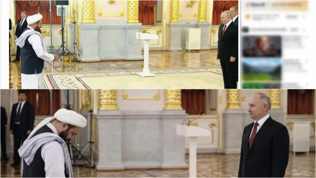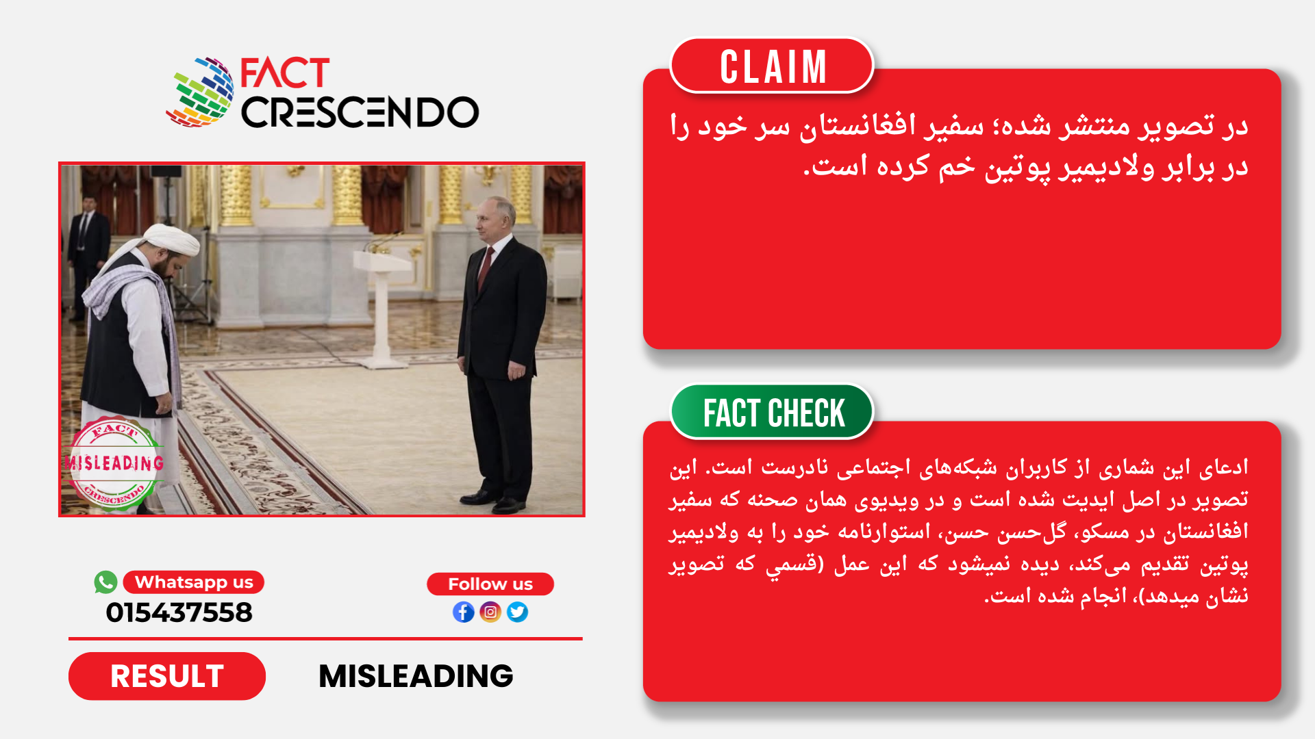 آیا این تصویر که نشان میدهد سفیر افغانستان در روسیه به ولادیمیر پوتین سر خم کرده است، واقعی است؟ : TITLE