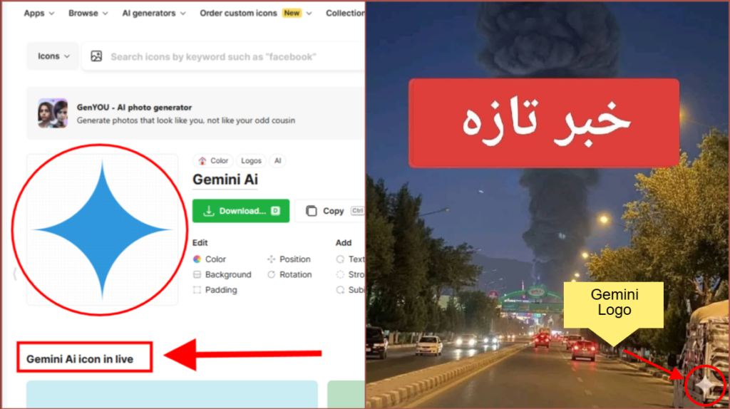 دویم انځور: دویم انځور موږ په دقت سره وکتلو او ومولېدل چې په انځور د جیمنای مصنوعي ځیرکتیا لوګو یا ایکن ښکاري. تاسې کولی شئ په لاندې توګه وګورئ، چې دا په دې مانا چې دغه انځور اصلاً په مصنوعي ځیرکتیا په ځانګړې توګه جیمنای بانې جوړ شوی دی. ځکه کله چې د مصنوعي ځیرکتیا (Gemini) په وسیله کوم انځور جنریټ شي، معمولاً‌ په انځور د جمینای لوګو راځي.