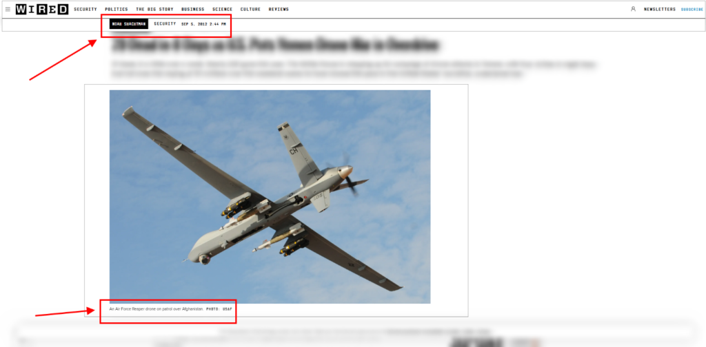 لومړی انځور: په لومړي انځور موږ ګوګل ایمیج لټون پلی کړ، چې اصلاً دغه انځور د یوې امریکایي ډرون (General Atomics MQ-9 Reaper) نومې الوتکې، چې همدا انځور ان 2012 کې هم له یو شمېر راپورونو سره خپور شوی دی.