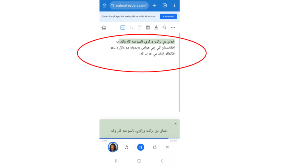 د دې تر څنګ، موږ چې د ویډیو غږ واورېدو، نو په ویډیو کې هغه خبرې چې په پښتو ژبه شوي دي، د مصنوعي ځیرکتیا له جنریټ شویو غږونو سره یې ډېر شباهت درلودلو. موږ په عین حال د همدې ویډیو لومړۍ برخې سکریپټ یا متن ټایپ (ولیکلو) او بیا مو د ai په یو ویبسایټ غږیز کلیپ ته واړولو، لکه څه ډول چې تاسې ته پورته سکرین شاټ کې ښکاري. موږ ولېدل چې د دواړو (ویډیو او ټیسټ کوونکي جنریټ شوي ai غږ، چې له ټایپ شوي متن مو جنریټ کړ) ترمنځ ډېر شباهت موجود دی او ښکاروي، چې د ویډیو غږ حقیقي یا انساني ندی.
