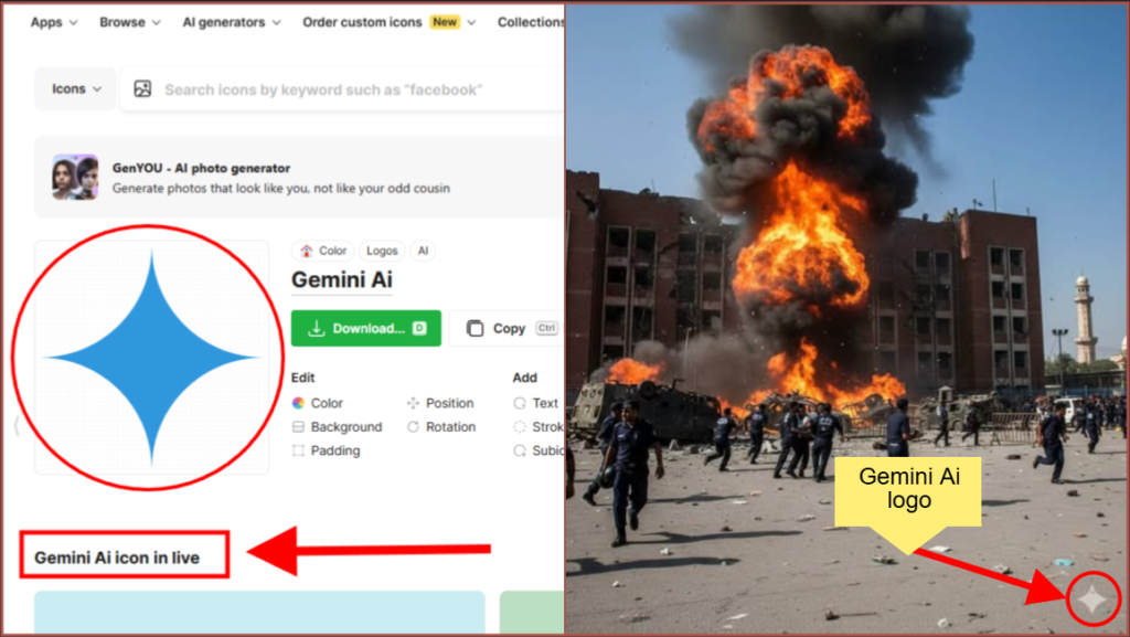 د دې تر څنګ موږ چې کله له ادعا سره خپور شوی انځور په دقت سره وکتلو، نو ومولېدل، چې په انځور د (Gemini) لوګو یا نښه شته دی، چې دا په دې مانا چې دغه انځور په مصنوعي ځیرکتیا په ځانګړې توګه د (Gemini) په واسطه جوړ شوی دی.