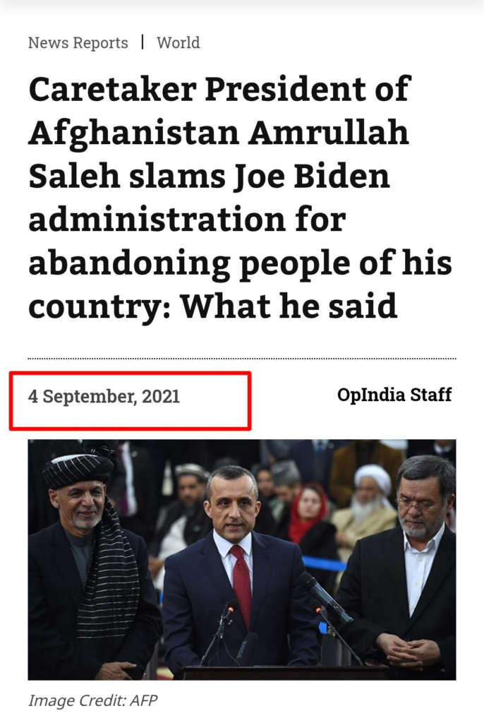 همدغه انځور د ۲۰۲۱ کال په سپتمبر میاشت کې هم د څو رسنیو راپورونو او څو خبرونو پوښښ لخوا د تمبیل په توګه کارول شوی و، چې دا ثابتوي چې دا انځور زوړ دی او د اشرف غني او امرالله صالح د افغانستان له وروستي سفر سره تړاو نلري.