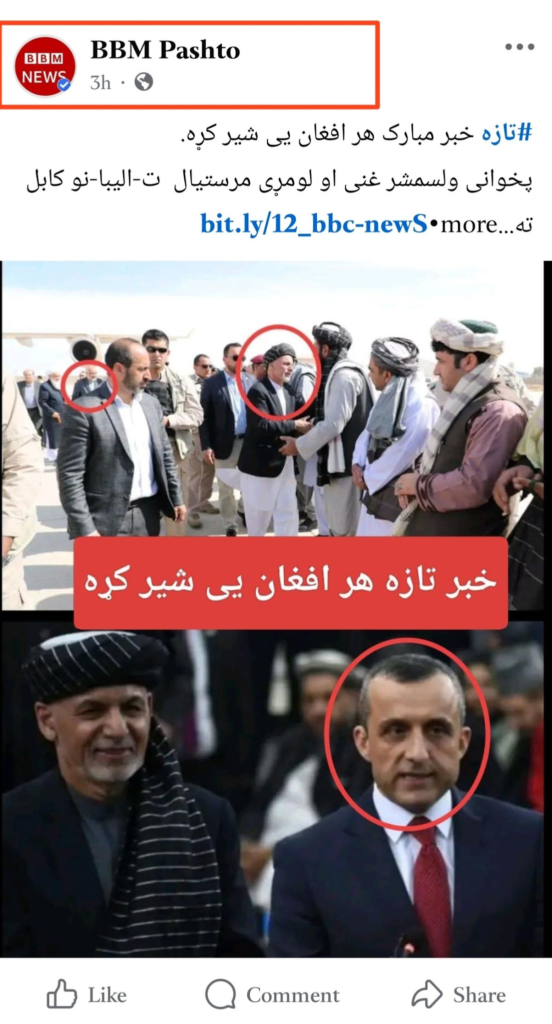 د فیسبوک پوسټ ادعا کوي چې ګواکې د افغانستان پخواني ولسمشر اشرف غني او امرالله صالح کابل ته رسیدلي.