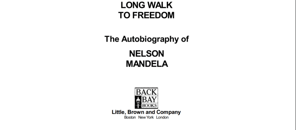 د نیلسن منډیلا مشهور کتاب (Long Walk to Freedom) کې د هغه ماشومتوب، زده کړو، سیاست، د زندان ژوند او بیرته خوشې کېدو اړوند لیکل او کېسې شوي دي.