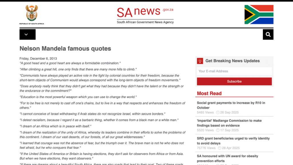 د دې تر څنګ د سویلي افریقا دولتي خبري آژانسونو ټولګو، نیلسن منډیلا فونډیشن ویبسایټ او نورو اړوند منابعو کې هم داې کیسه نده ذکر شوې، چې د شوې ادعا ملاتړ وکړي.