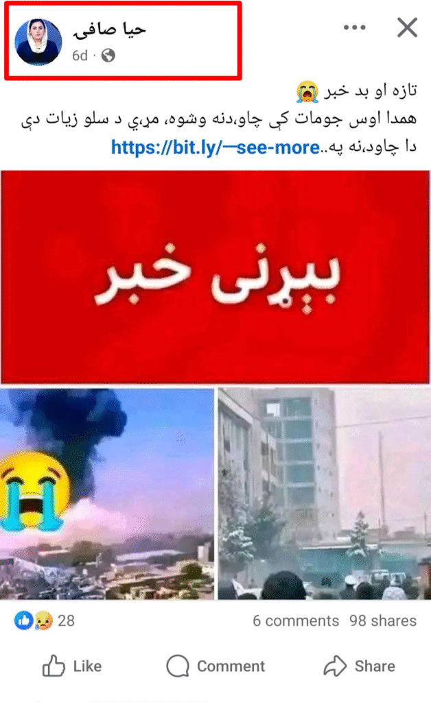 د فیسبوک کاروونکی ادعا کوي چې ګواکي په افغانستان کېپه جومات کې درنه چاودنه وشوه.