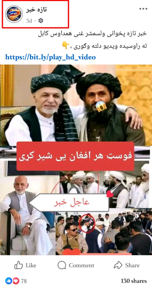 د فیسبوک پوسټ ادعا کوي چې ګواکې د افغانستان پخواني ولسمشر اشرف غني کابل ته رسیدلی دی.
