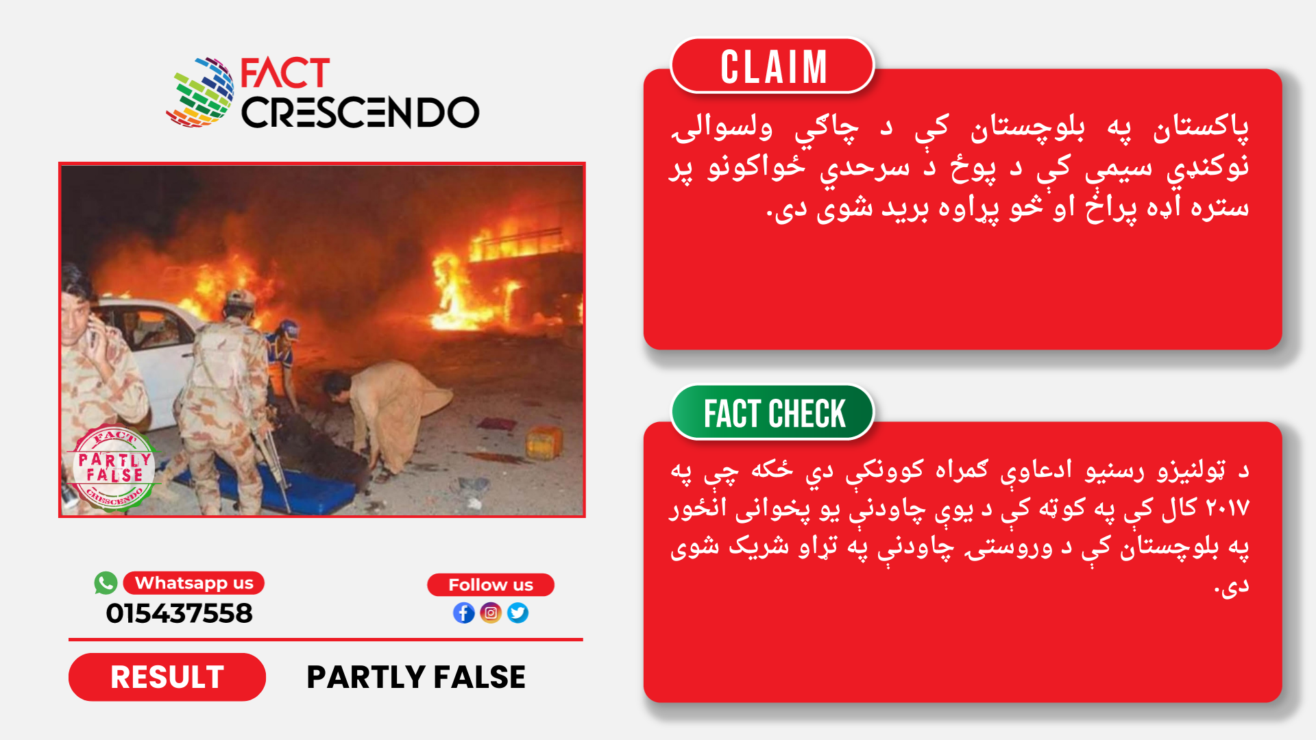 په هرصورت، د فیکټ کریسینډو موندنې ښیي چې د ټولنیزو رسنیو ادعاوې ګمراه کوونکې دي ځکه چې په ۲۰۱۷ کال کې په کوټه کې د یوې چاودنې یو پخوانی انځور په بلوچستان کې د وروستۍ چاودنې په تړاو شریک شوی دی.