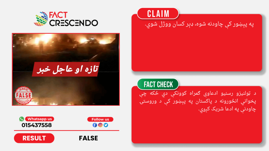 په هرصورت، د فیکټ کریسینډو موندنې ښیي چې خو د ټولنیزو رسنیو ادعاوې ګمراه کوونکي دي ځکه چې پخواني انځورونه د پاکستان په پېښور ښار کې پر وروستي چاودنې ادعاوو سره شریک شوي.