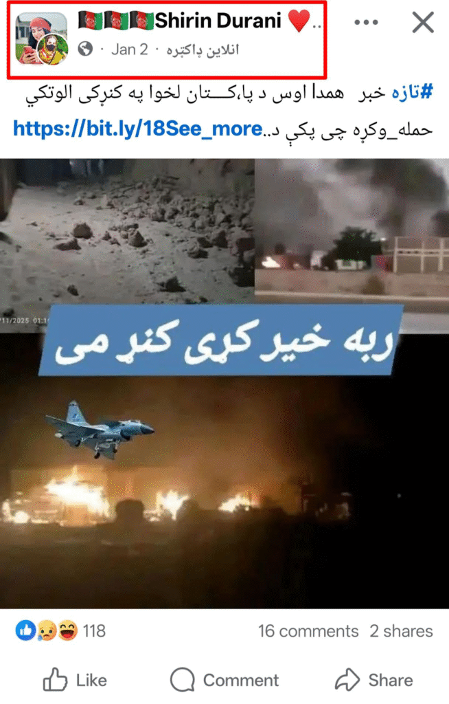د ټولنیزو رسنیو (فیسبوک) ځینو کاروونکو د افغانستان په کونړ ولایت کې وروستیو  پاکستاني   هوايي بریدونو په اړه د دروغجنو ادعاوو سره پخواني او غیر اړونده انځورونه شریک کړي دي.