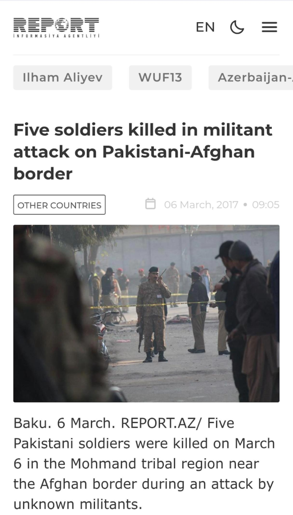 یو له هغو انځورونو څخه چې د ویروس ادعا سره خپریږي وروستی نه دی. دا د Report.az لخوا په یوه زاړه خبر کې ښکاري چې سرلیک یې دی “د پاکستان – افغان پولې په وسله والو برید کې پنځه سرتیري ووژل شول،” چې کلونه وړاندې په ۲۰۱۷ کال کې د یوې حملې په اړه خپور شو. دا تاییدوي چې دا انځور په بلوچستان کې د جنوري د وروستیو پیښو څخه مخکې دی او د یوې غیر اړونده ادعا د ملاتړ لپاره په غلط ډول بیا کارول کیږي.
