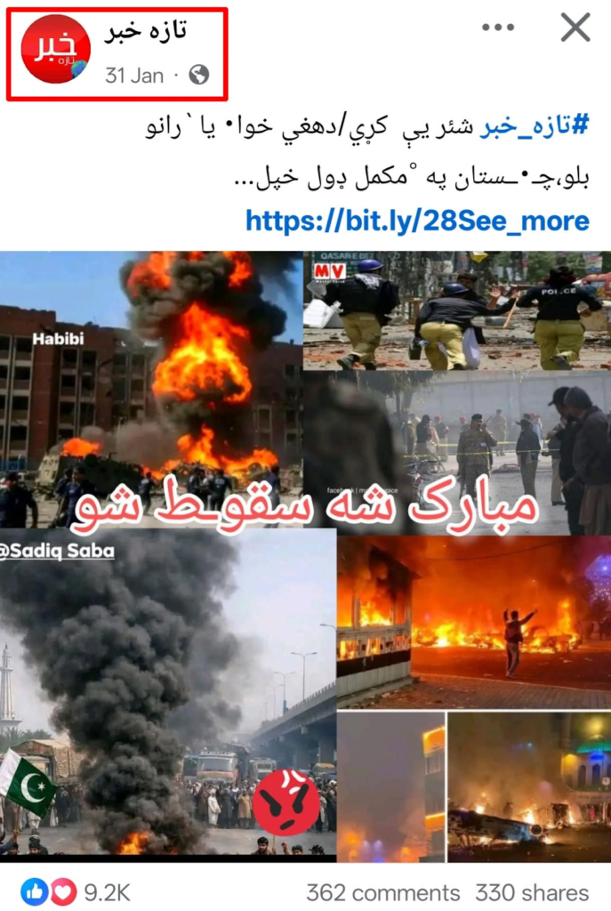 د جنوري په وروستیو کې د ټولنیزو رسنیو یوه ویروسي پوسټ چې ادعا کوي چې په بلوچستان کې “لشکر” یا وسله واله ډله “نسکوره شوې” ده. پوسټ دا پرمختګ د یوې لویې ماتونکې پیښې په توګه وړاندې کوي مګر په روښانه توګه ښکیلې ډلې نه پیژني یا کوم تایید وړ توضیحات نه ورکوي. په هرصورت، د انځورونو او شته خبرونو نږدې معاینه ښیي چې دا ادعا ګمراه کوونکې ده او ډیری هغه انځورونه چې شریک شوي پخواني دي او په بلوچستان کې د وروستیو پیښو سره تړاو نلري.