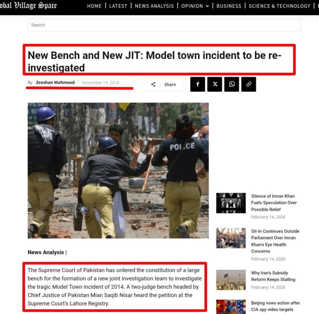 د لومړي انځور په ګوګل ریورس انځور پلي کولو سره موږ وموندله چې شریک شوی انځور زوړ دی او د ګڼو رسنیو ویب پاڼو لخوا د ۲۰۱۴ کال د ماډل ټاون پیښې د خبرونو سره شریک شوی و کله چې د ۲۰۱۴ کال د جون په ۱۷مه یوه وژونکې نښته وشوه چې پکې د پاکستان عوامي تحریک (PAT) څو غړي ووژل شول.