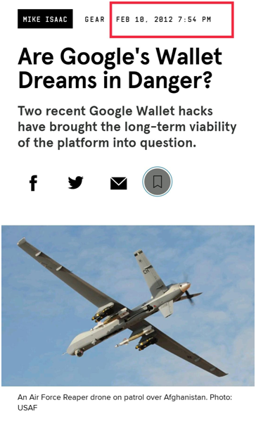 ورته عکس د ۲۰۱۲ کال د فبرورۍ په میاشت کې د WIRED په نوم ویب پاڼه کې په یوه مقاله کې خپور شوی و. ورته عکس په افغانستان کې د امریکا د هوايي ځواک د بې پیلوټه الوتکې ګزمه وه.