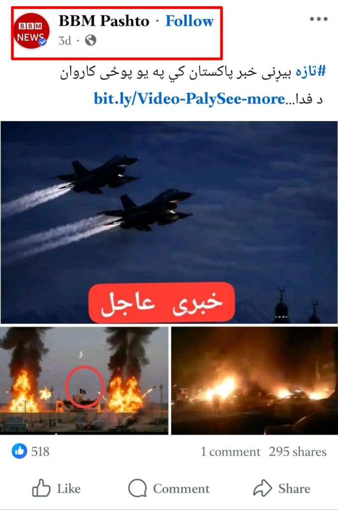 پخواني انځورونه پر پاکستاني ځواکونو برید په توګه شریک شوي. : TITLE