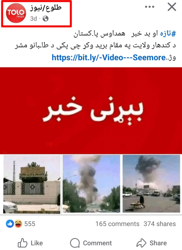 د ټولنیزو رسنیو (فیسبوک) پوسټ ادعا کوي چې پاکستان په کندهار مقام کې بریدونه کړي.