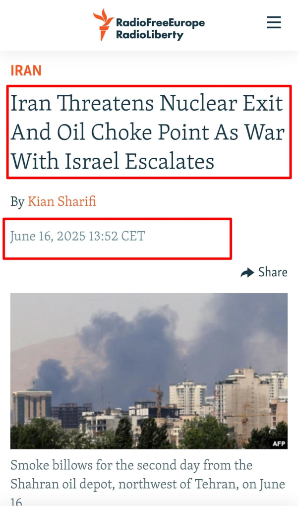 کله چې موږ په ویروسي پوسټ کې شریک شوي لومړي انځور باندې د ګوګل ریورس عکس لټون تطبیق کړ، موږ دا د جون په ۱۶، ۲۰۲۵ کې د راډیو فری اروپا/راډیو لیبرټي لخوا خپره شوې مقاله کې وموندله. په مقاله کې انځور د ایران-اسرائیل شخړې په جریان کې د زیاتیدونکي بریدونو په جریان کې د تهران په شمال لویدیځ کې د شهران د تیلو له ډیپو څخه لوګی پورته کیږي. دا انځور په اسلام آباد یا پاکستان کې د کومې پیښې سره تړاو نلري، دا تاییدوي چې دا په ټولنیزو رسنیو ادعا کې غلط منسوب شوی دی.