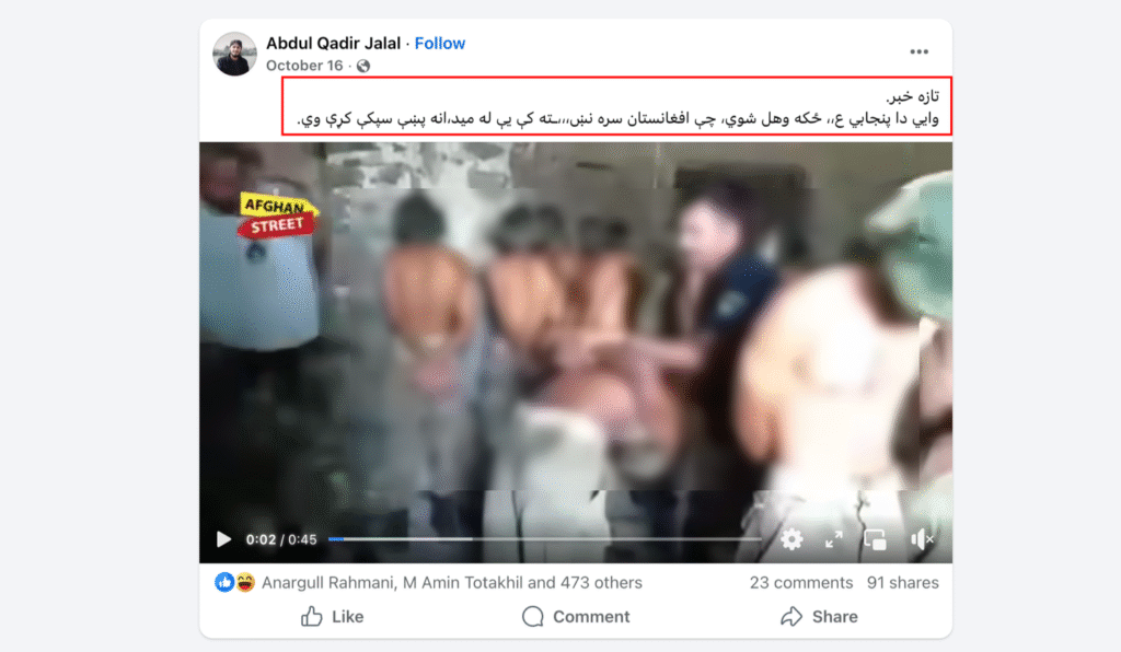 لومړی تاسې کولی شئ د ټولنیزو رسنیو فیسبوک کاروونکو لاندې یو پوسټ د نمونې په توګه وګورئ. دوی په خپلو پوسټونو کې له خپرې شوې ویډیو سره لیکلي: «دا پنجابي عسکر ځکه وهل شوي، چې افغانستان سره نښته کې یې له میدان څخه تېښته کړې ده».