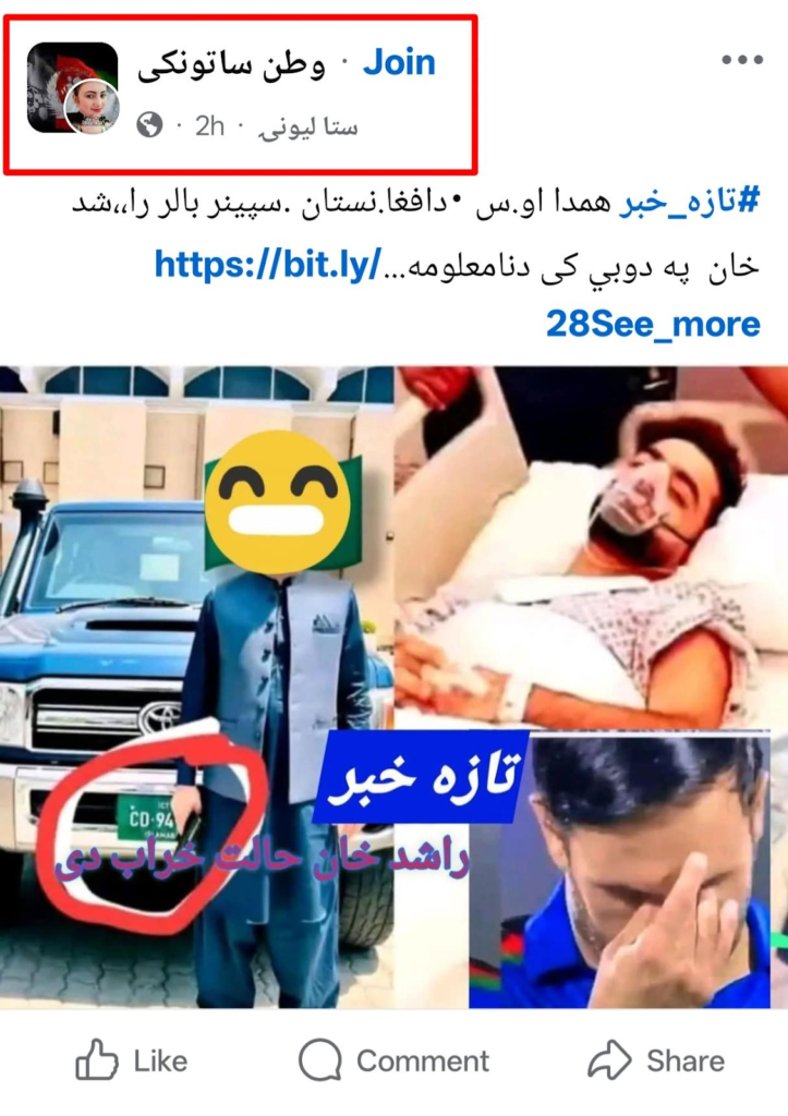 د فیسبوک پوسټ ادعا کوي چې په ټولنیزو رسنیو کې یوه پوسټ ادعا کوي چې افغان سپنر راشد خان په دوبۍ کې وژل شوی دی.