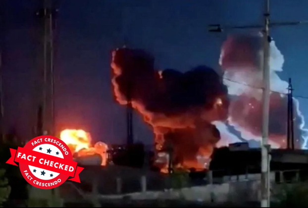 انځور کې چاودنې د اسراییلو پر اټومي بټۍ برید نه ښیي، بلکې د اوکراین د مهماتو په یو ډیپو کې د چاودنې دي.