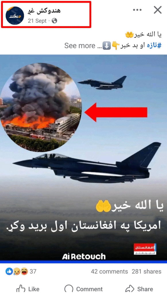 فېسبوک کارکوونکي ادعا کړي چې ګواکي امريکا پر افغانستان بريد کړی دی.
